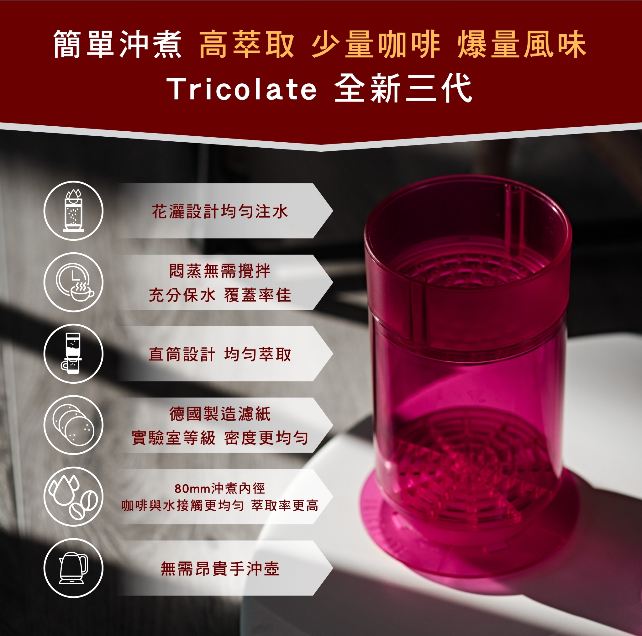 Tricolate Brewer 3代高萃取咖啡濾杯,獨特的分水網設計工藝,只需持續注水就能沖出職人等級咖啡!